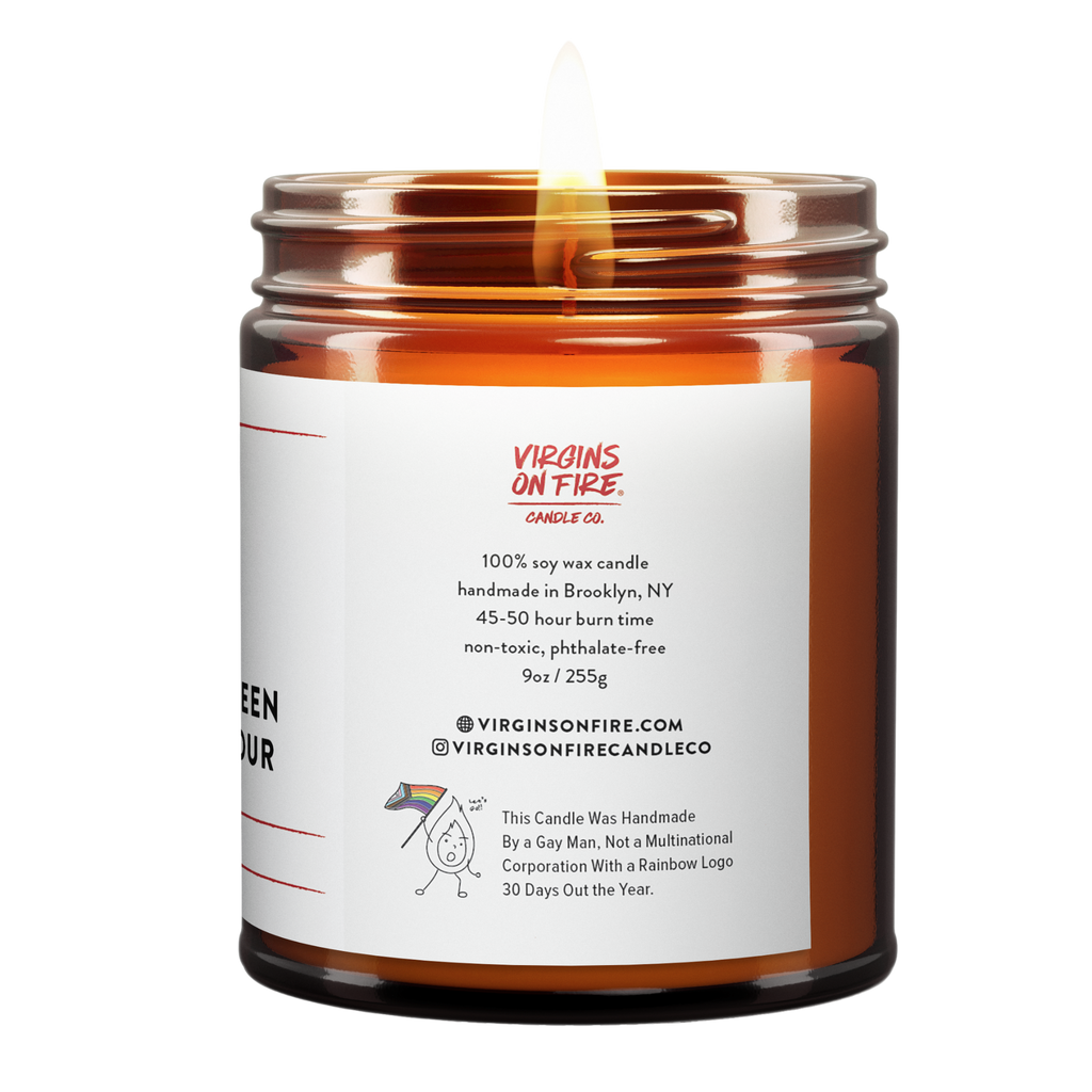 From Virgins on Fire Candle Co. these quality jar candles are made with 100% soy wax and handmade in Brooklyn, NY using only safe phthalate-free fragrances sourced from socially responsible suppliers.