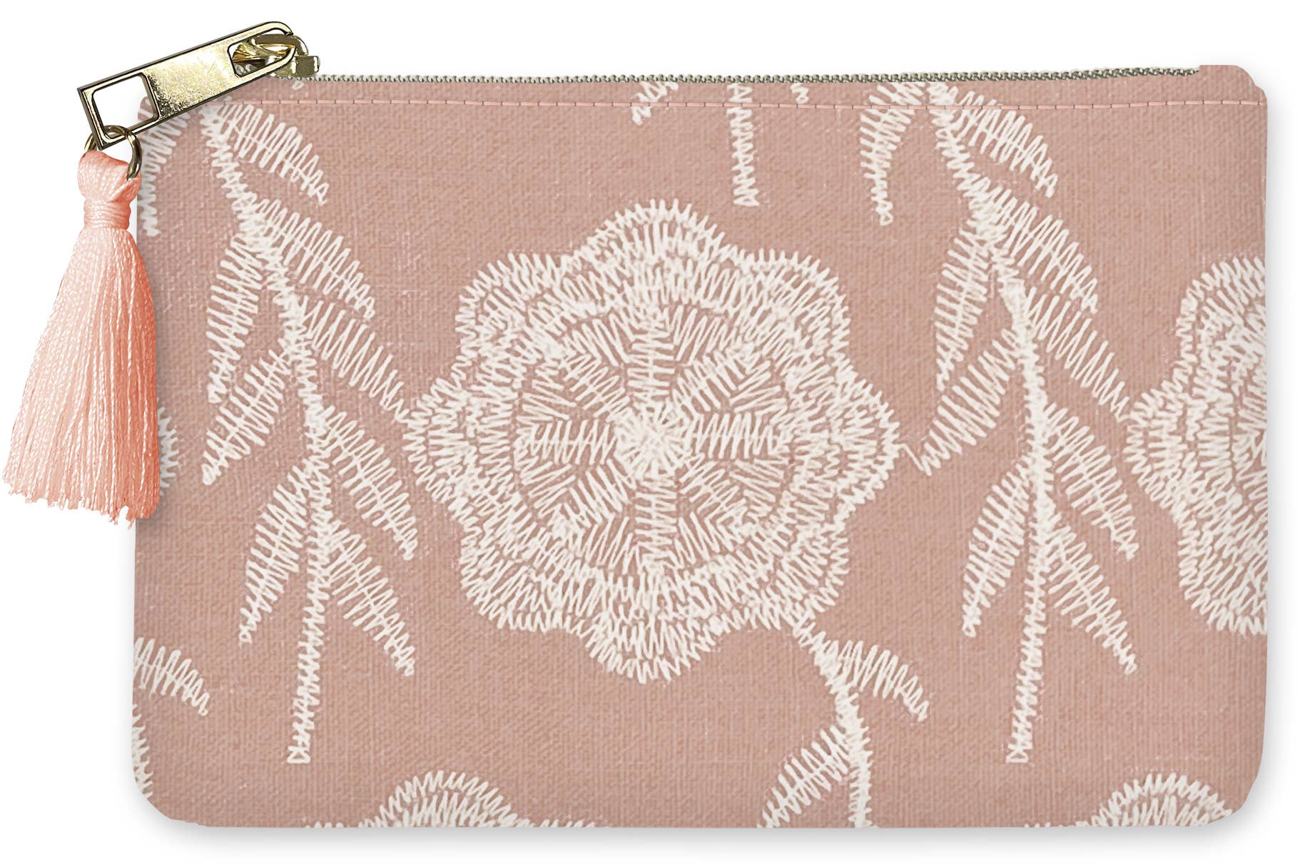 Embroidered fabric pouch with lining and tassel 5" x 3.5"