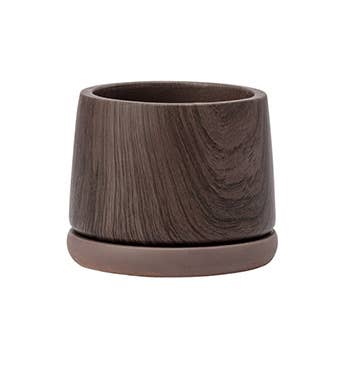 Dark Wood-Grain Look Planter with Matching Saucer – Modern Natural Style