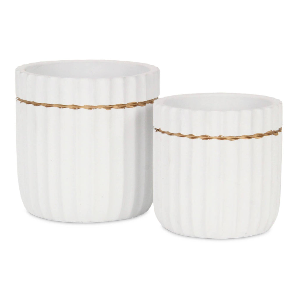 Aurine Round Gold Trimmed Ridged Ceramic Pot - White